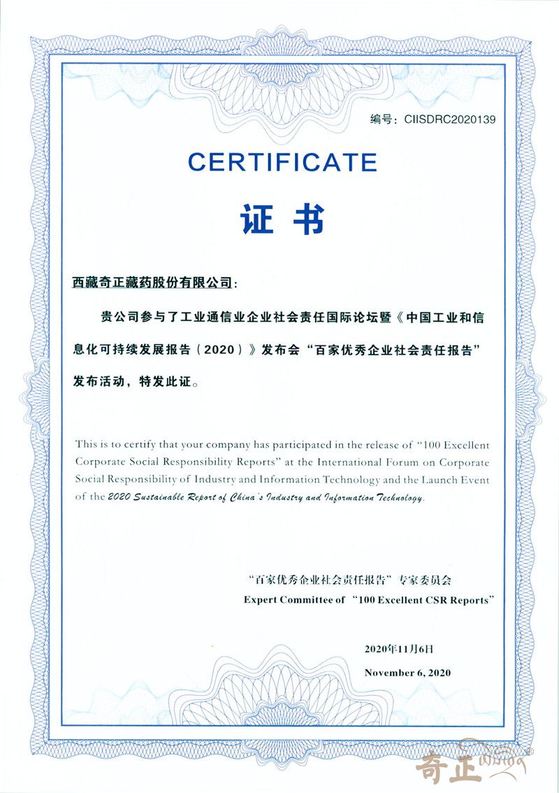 2020年6月“百家優(yōu)秀企業(yè)社會(huì)責(zé)任報(bào)告”-證書