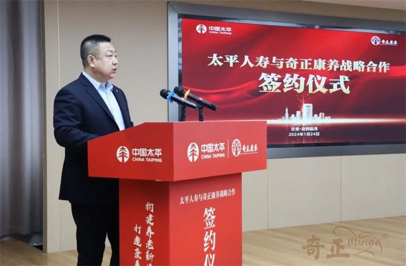首先,臨洮縣委書記張振亞發(fā)表了致辭,對兩家企業(yè)的合作表示熱烈的祝賀,并期待此次合作能推動地方康養(yǎng)產(chǎn)業(yè)的發(fā)展。張振亞表示,太平人壽與奇正康養(yǎng)的戰(zhàn)略合作,是央企和民企攜手合作的有益嘗試,更是保險和養(yǎng)老產(chǎn)業(yè)深度融合的生動體現(xiàn)。這不僅有助于提升雙方在各自領(lǐng)域的核心競爭力,更為廣大老年人帶來了福音,讓他們在享受保險服務(wù)的同時,享受到更加專業(yè)、更加貼心的康養(yǎng)服務(wù)。