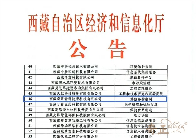 近日,西藏奇正青稞健康科技有限公司以創(chuàng)新之名,榮膺認(rèn)證創(chuàng)新型中小企業(yè)的殊榮,這一榮譽(yù)是公司過去十余年在青稞產(chǎn)業(yè)的卓越貢獻(xiàn)與創(chuàng)新精神的體現(xiàn)。公司不僅贏得了市場的廣泛認(rèn)可,更是獲得了官方對其深耕高原特色農(nóng)產(chǎn)品、推動地區(qū)經(jīng)濟(jì)發(fā)展努力的肯定。