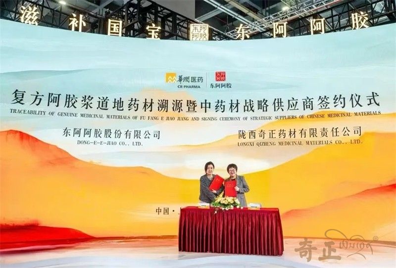 2024年11月10日,在第七屆中國國際進(jìn)口博覽會上,奇正中藥下屬隴西奇正藥材有限責(zé)任公司(以下簡稱“隴西奇正”)與東阿阿膠股份有限公司(以下簡稱“東阿阿膠”)簽署戰(zhàn)略合作協(xié)議,隴西奇正成為東阿阿膠復(fù)方阿膠漿道地藥材溯源中藥材戰(zhàn)略供應(yīng)商,標(biāo)志著兩家企業(yè)資源互補、優(yōu)勢共享,共同致力于中醫(yī)藥產(chǎn)業(yè)的高質(zhì)量發(fā)展。
